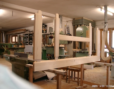 Probeweise zusammengesteckte Türfriese für eine weitere Innentür. ( vier Füllungen )