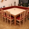 Feuerwehrhaus Eichenau Aufenthaltsraum " Stüberl".     Verwendete Hölzer: Buche Massivholz und Furnier für die Tischgestelle und Eckbänke,Tischplatten aus massiven  Ahorn.                         Dia - Show